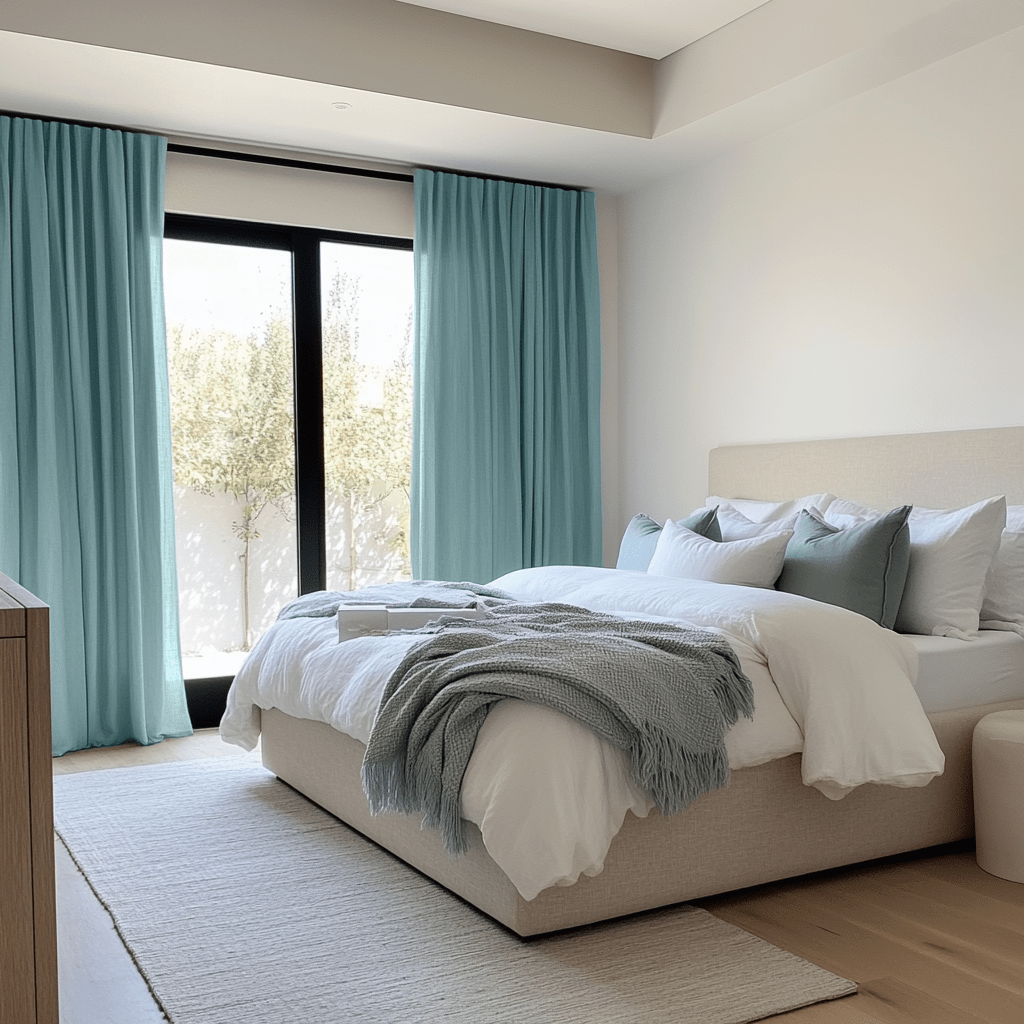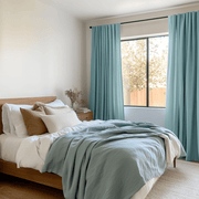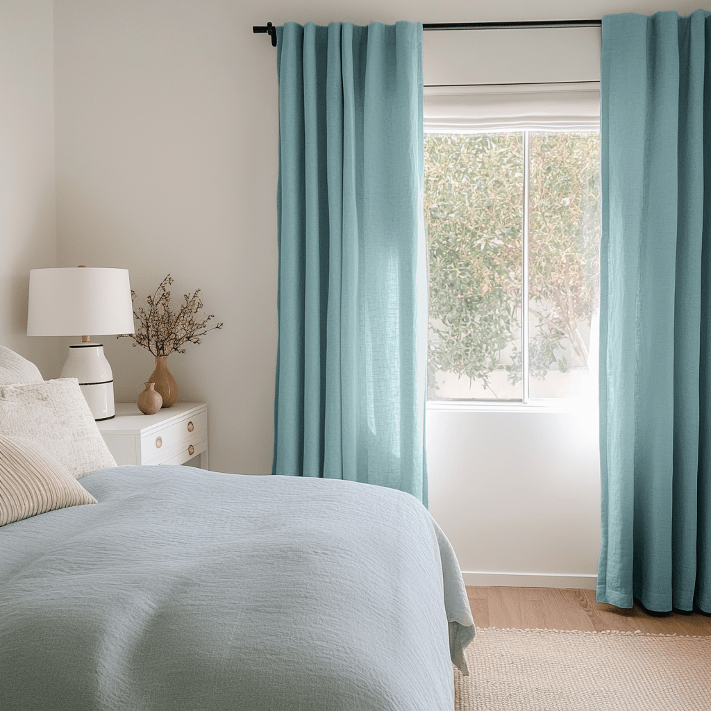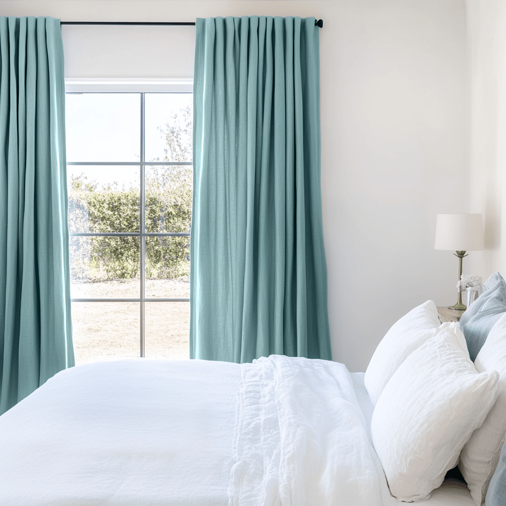 Aquamarine Light Blue Bedroom Curtains - Linen Curtain Panel With Back Tabs - Unlined, Cotton or Blackout Lining