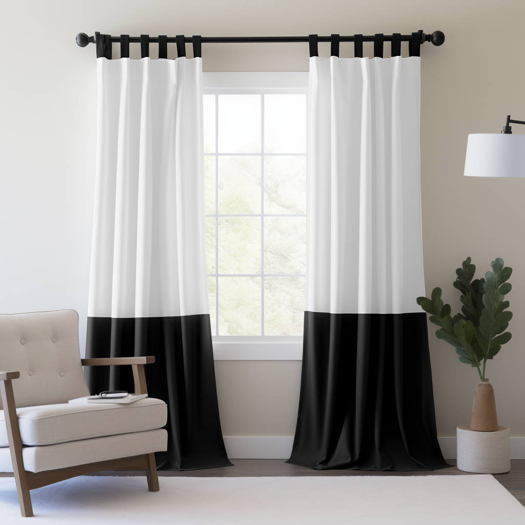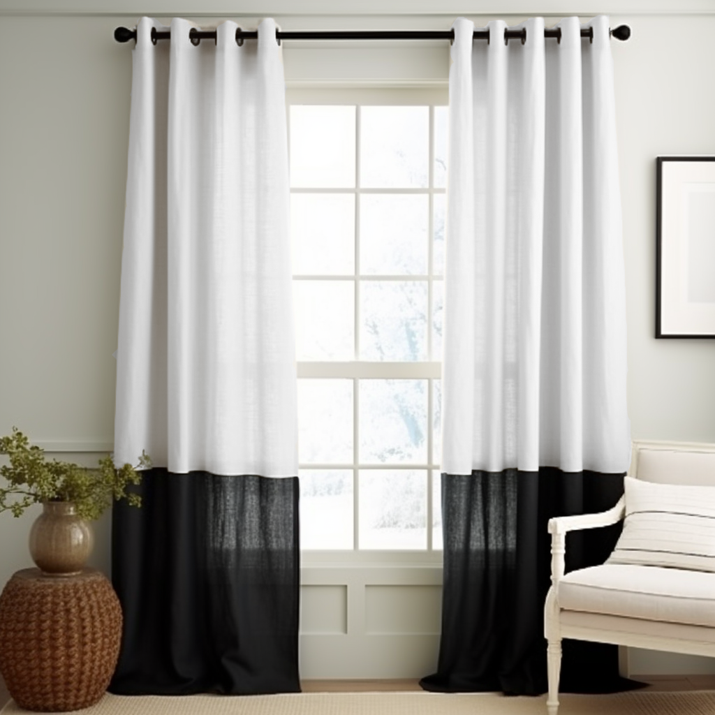 Black and White S-Fold Linen Curtain Panel with Cotton or Blackout Lining - Custom Width and Length