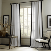 Black and White Frame Border S-Fold Linen Curtain Panel - Custom Width and Length