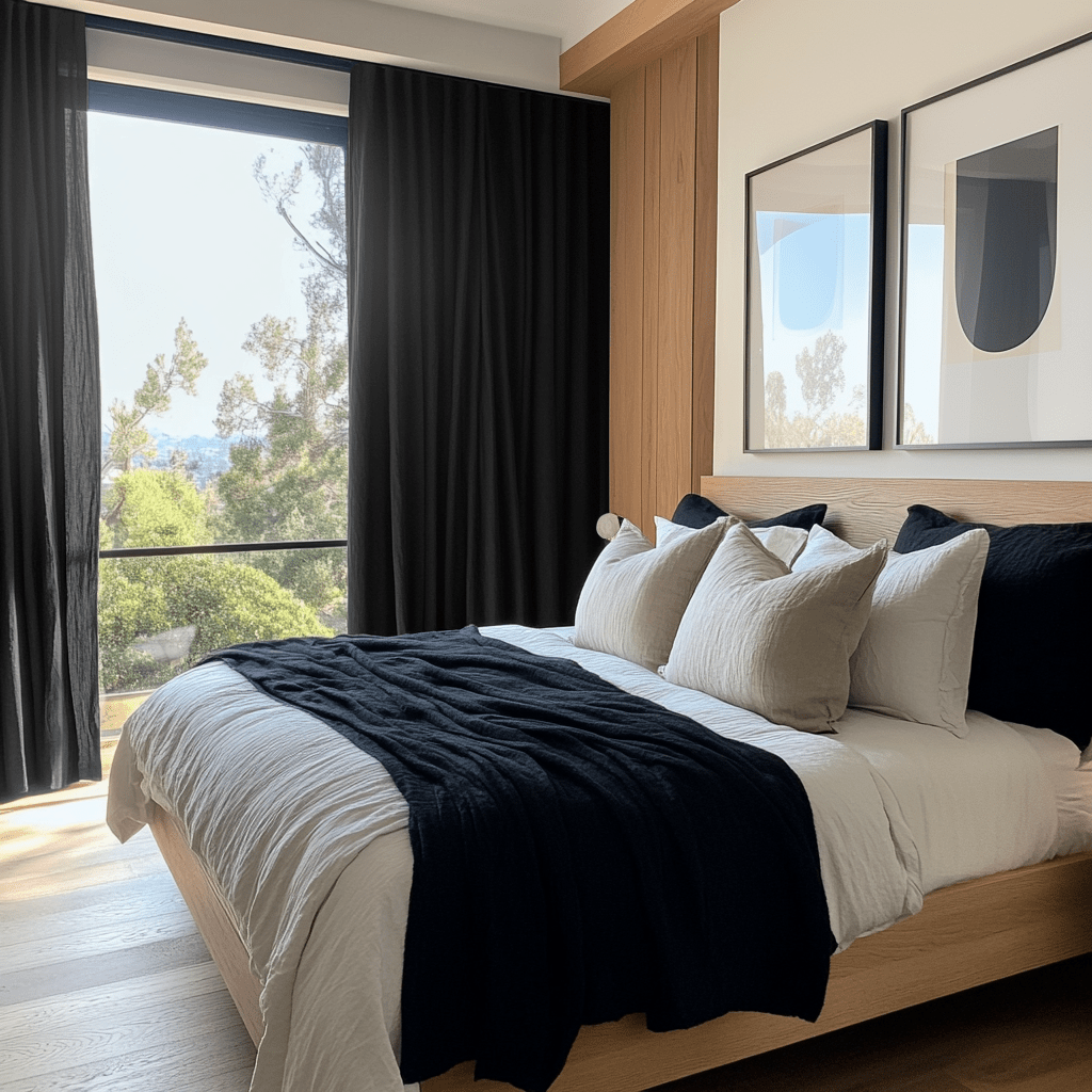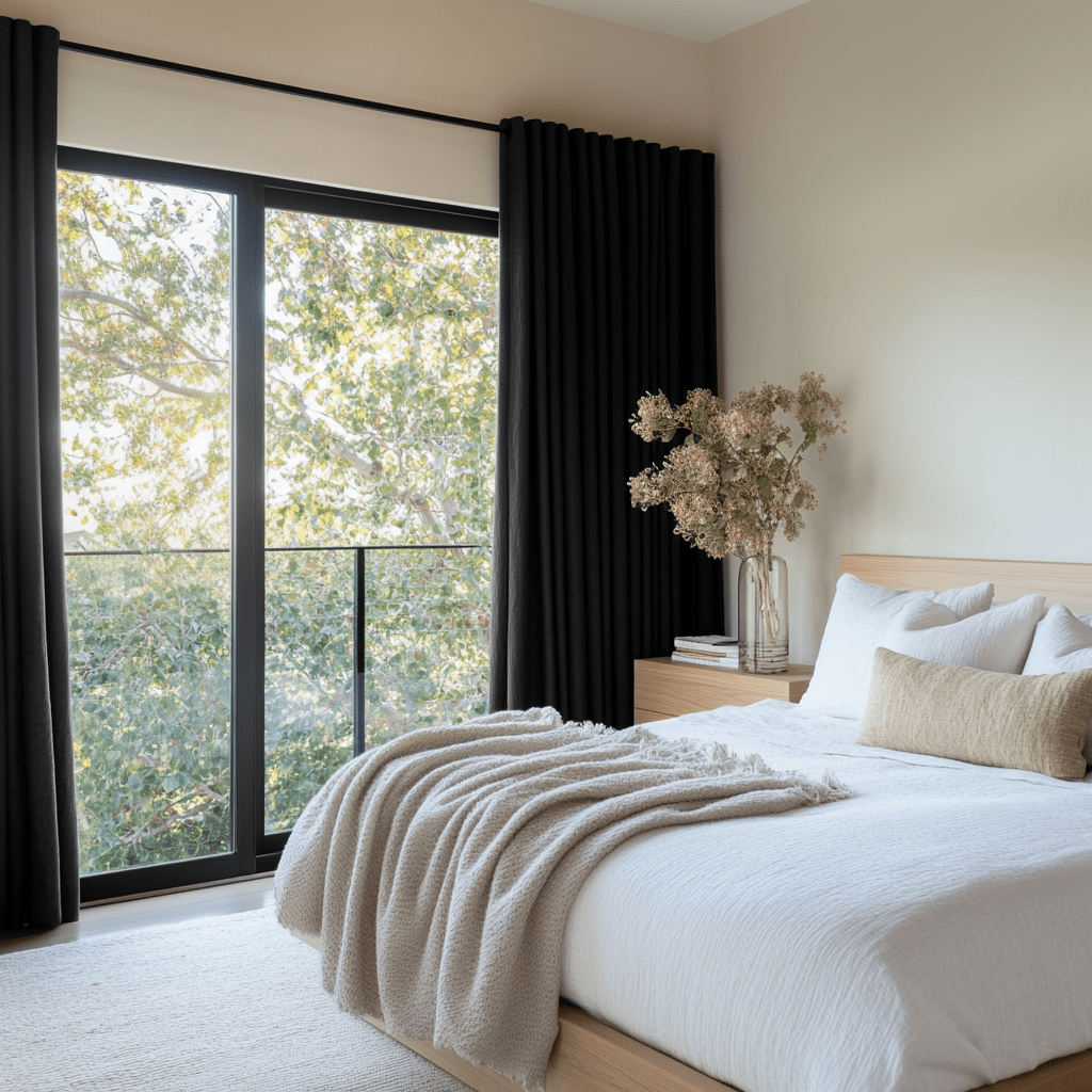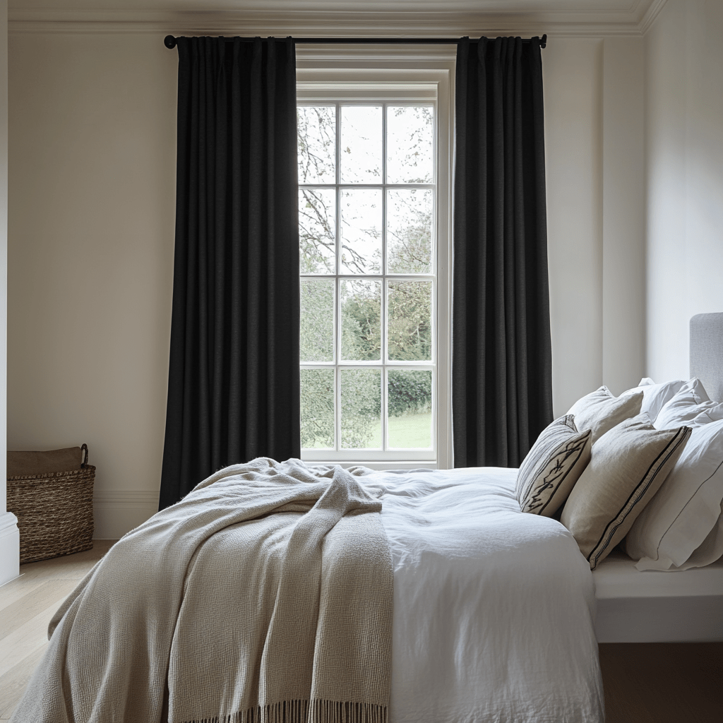 Black Bedroom Curtains - Linen Curtain Panel With Back Tabs - Unlined, Cotton or Blackout Lining