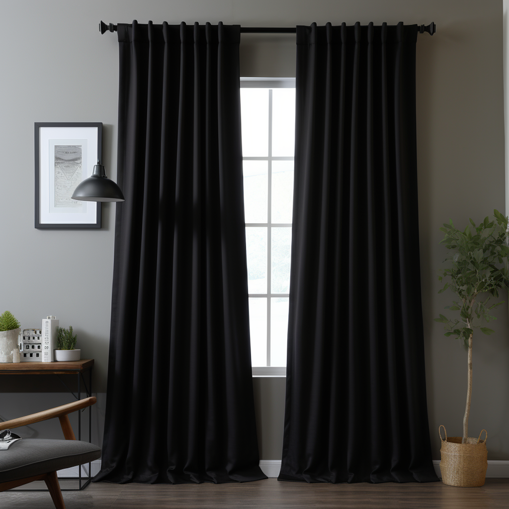 Black Linen Rod Pocket Curtain with Blackout Lining - Custom Sizes And Colors