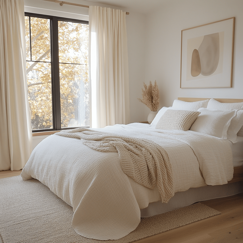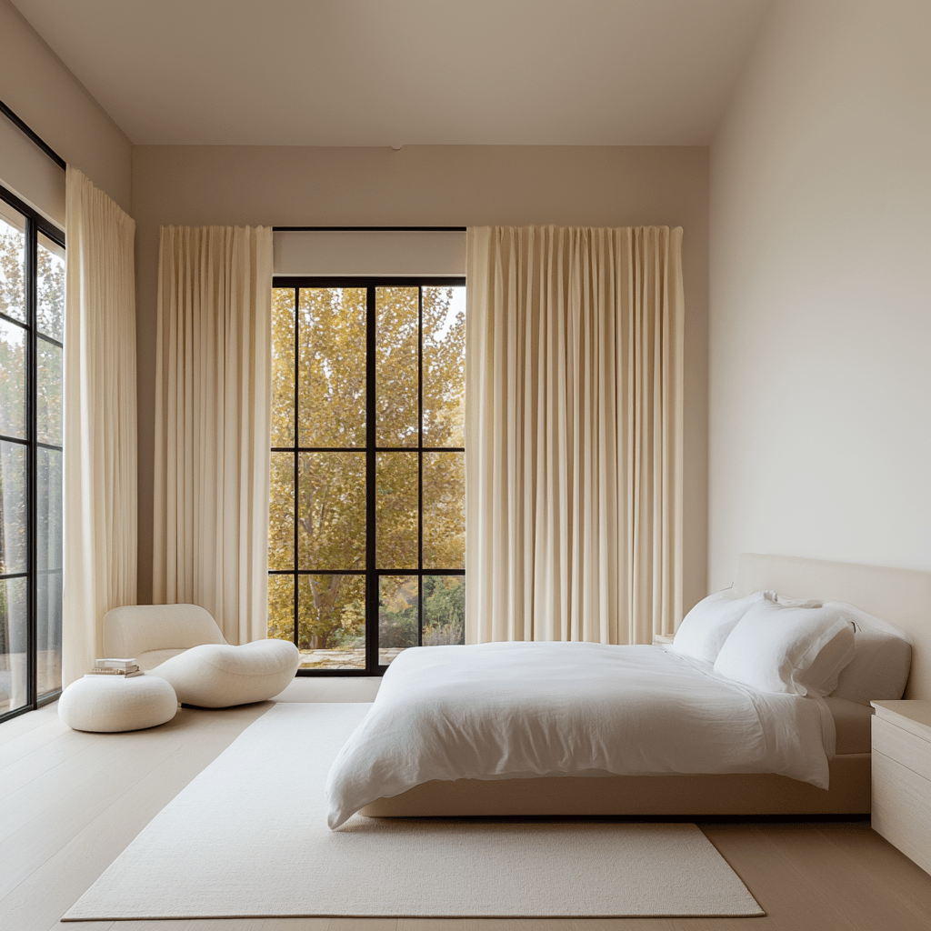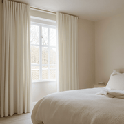 Cream Bedroom Curtains - Linen Curtain Panel With Back Tabs - Unlined, Cotton or Blackout Lining