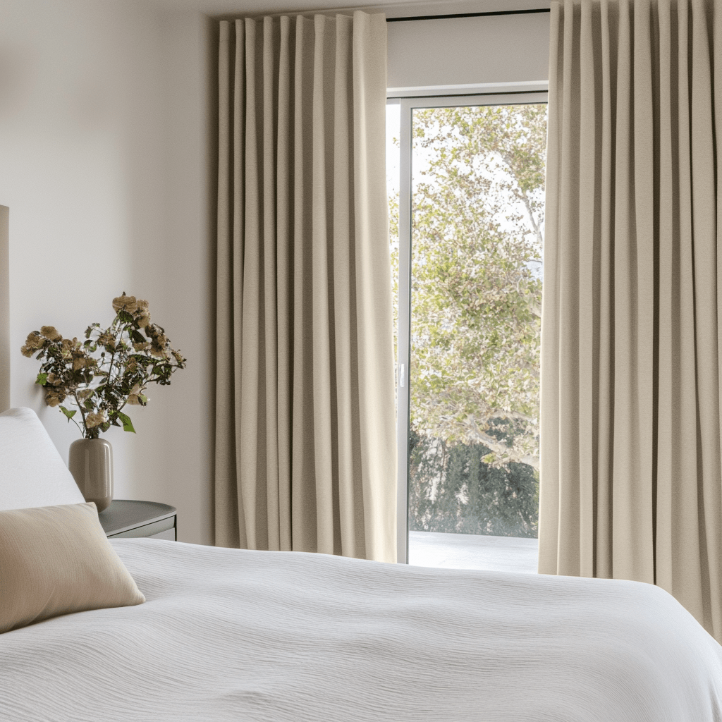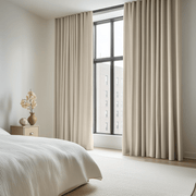 Ecru Beige Bedroom Curtains - Back Tab Heavyweight Linen Curtain Panel - Unlined, Cotton or Blackout Lining