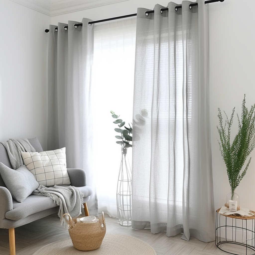 Grey Linen Rod Pocket Curtain Panel - Custom Sizes & Colors