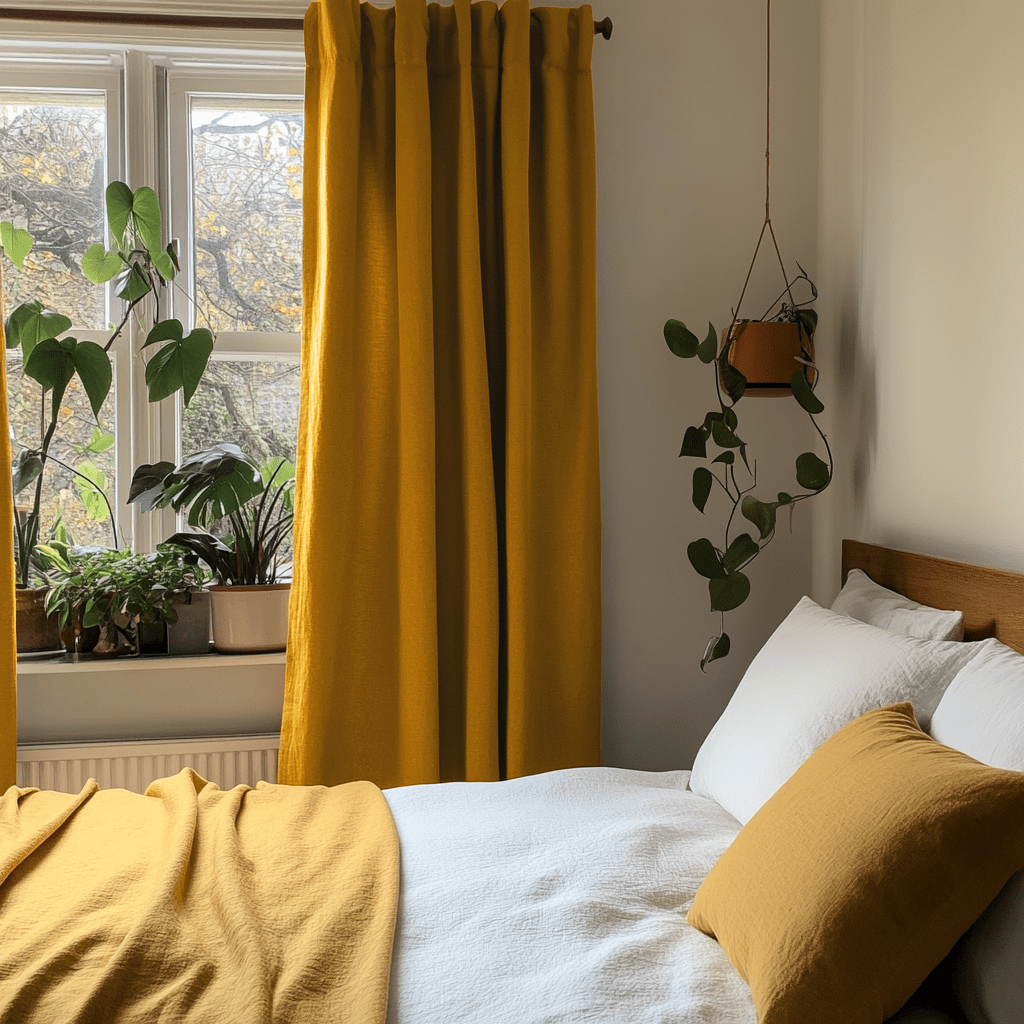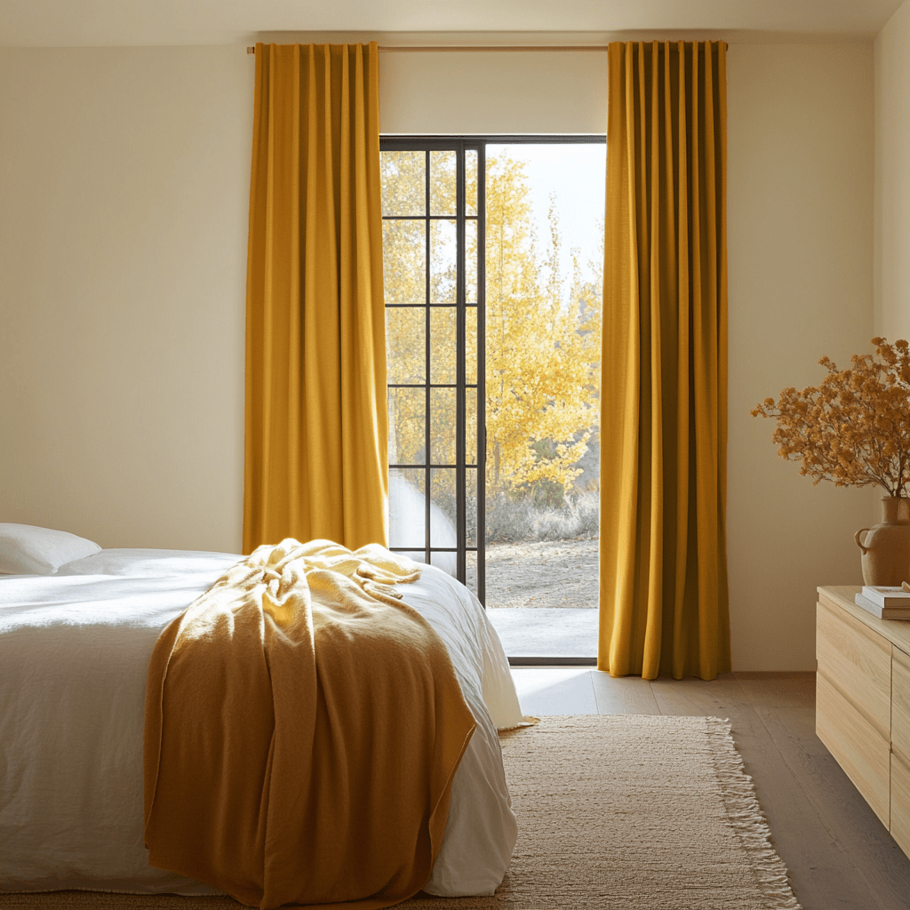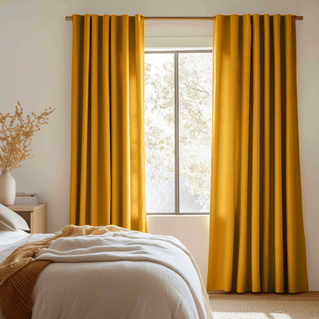 Mustard Yellow Bedroom Curtains - Linen Curtain Panel With Back Tabs - Unlined, Cotton or Blackout Lining