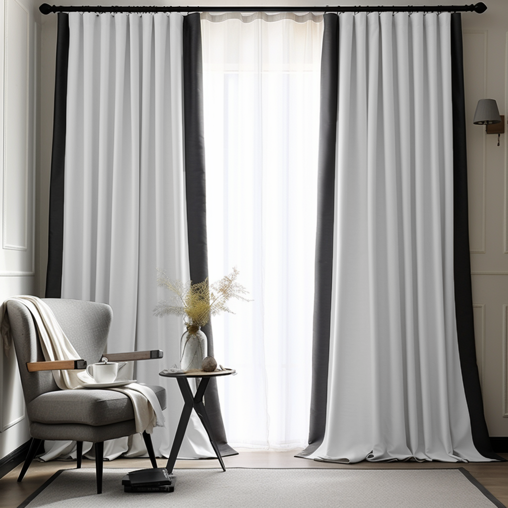 White Curtain with Black Border - Grommet Linen Curtain Panel with Blackout Lining - Custom Width and Length