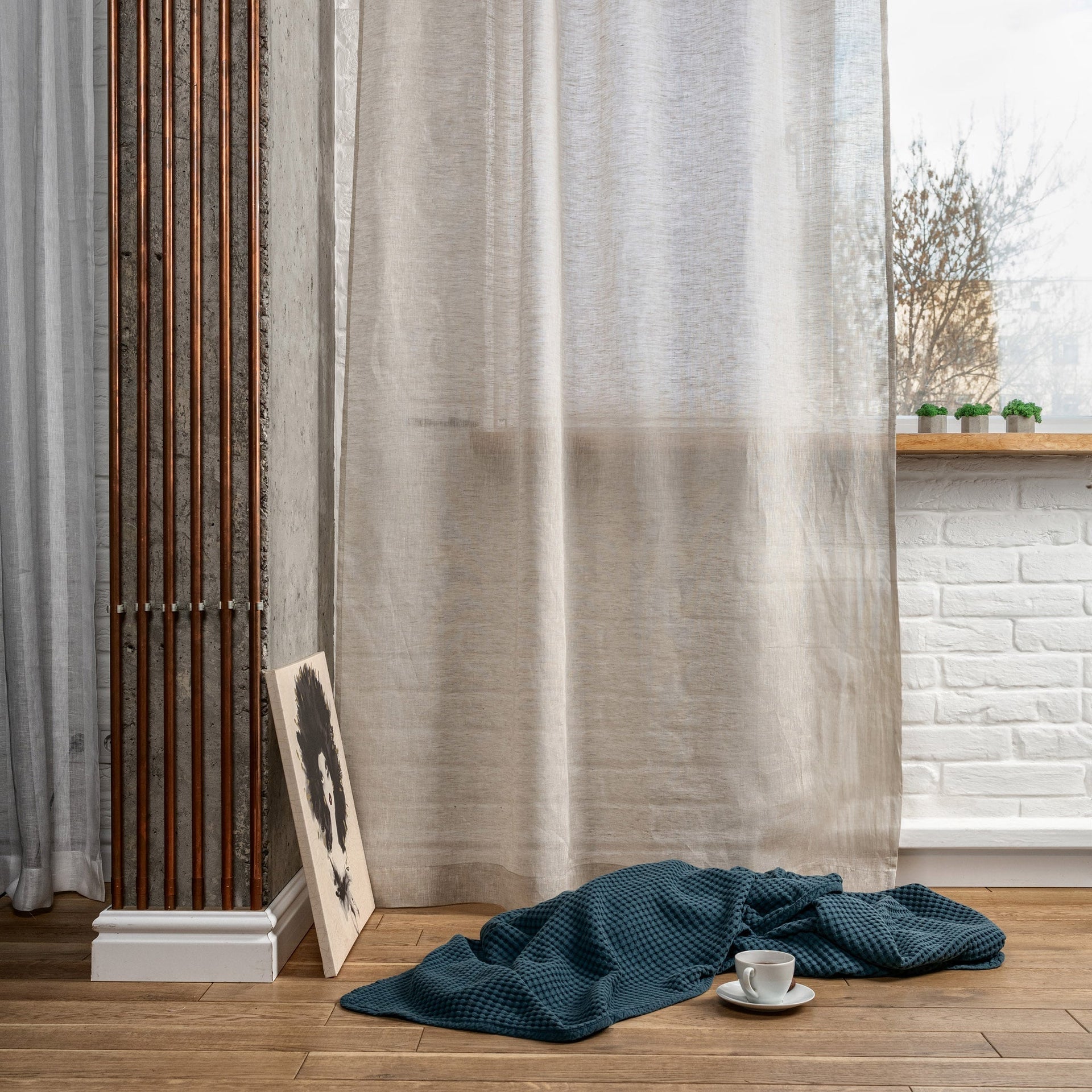 S-fold Sheer Linen Bay Window Curtains Panel - Suitable for Rings, Hooks and Tracks - Sold Individually