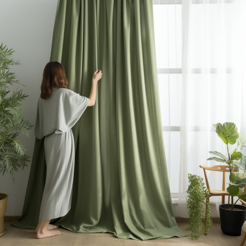 Green Tab Top Thermal Insulated - 100% Blackout Linen Curtain - Custom Width and Length - Energy Efficient Curtains for Windows