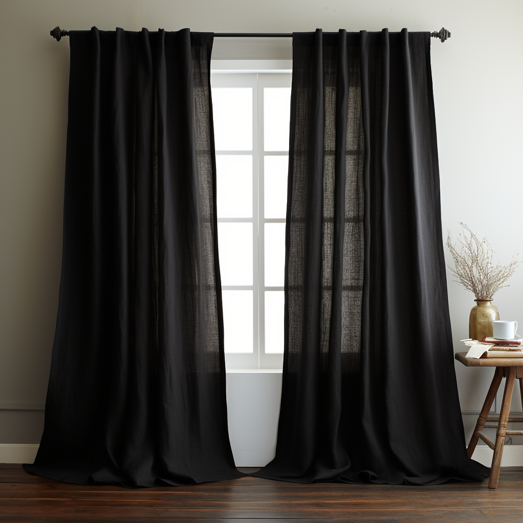 Black Linen Tab Top Curtain Panel - Custom Width, Custom Length