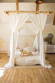 Canopy Bed Curtain - Natural Sheer Linen -With Ties