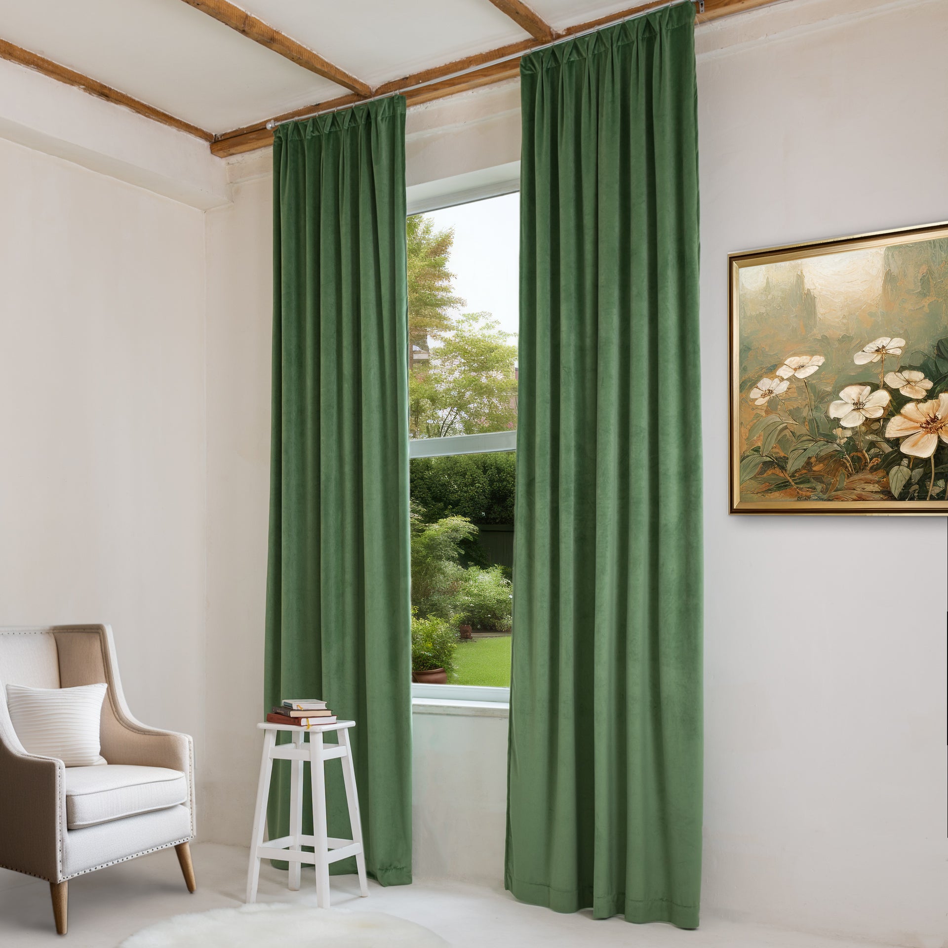 Fern Green Velvet Pinch Pleat Curtain - Custom Sizes and Colors