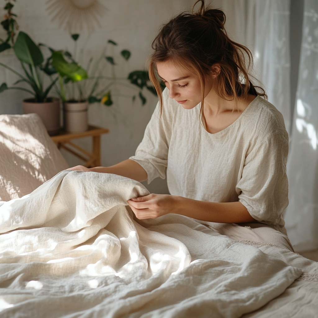 Linen bedding is naturally wrinkle-resistant and looks great with a relaxed, slightly rumpled look, reducing the need for frequent ironing and making it easy to care for.