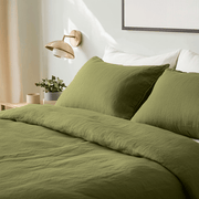 Moss Green Washed Linen Duvet Cover Set - Single, Twin, Twin XL, Full/Double, Queen, King, California King