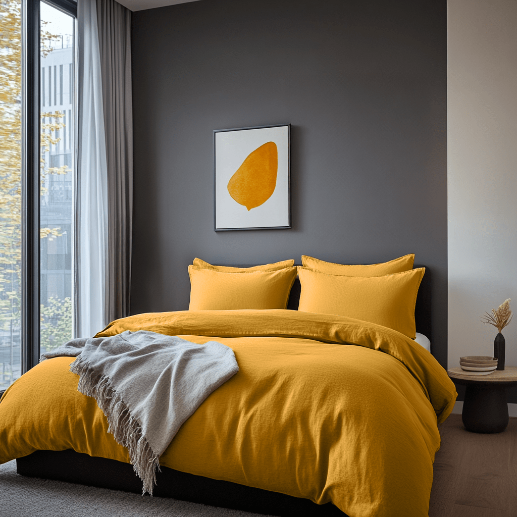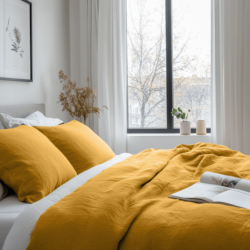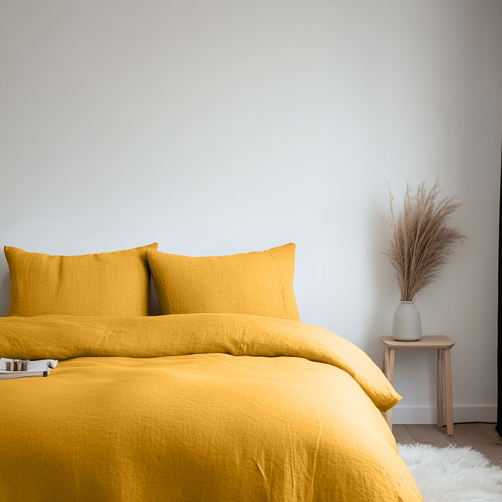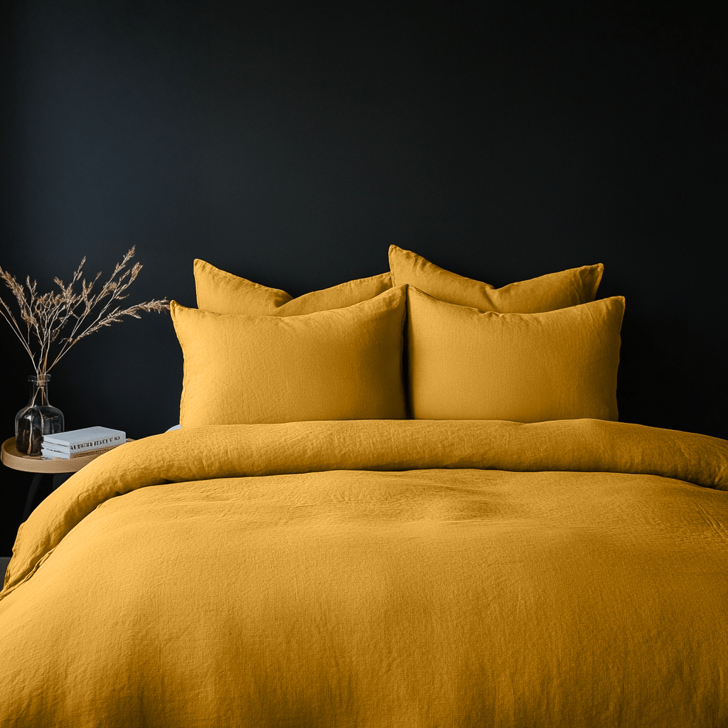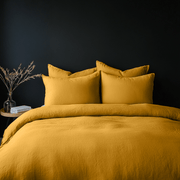 Mustard Yellow Washed Linen Duvet Cover Set - Single, Twin, Twin XL, Full/Double, Queen, King, California King