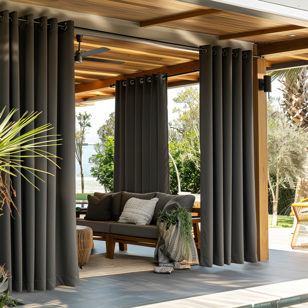 Outdoor Waterproof and Windproof Curtain With Velcro Tabs - Hook-and Loop Tabs - Easy-to-install Patio Curtains
